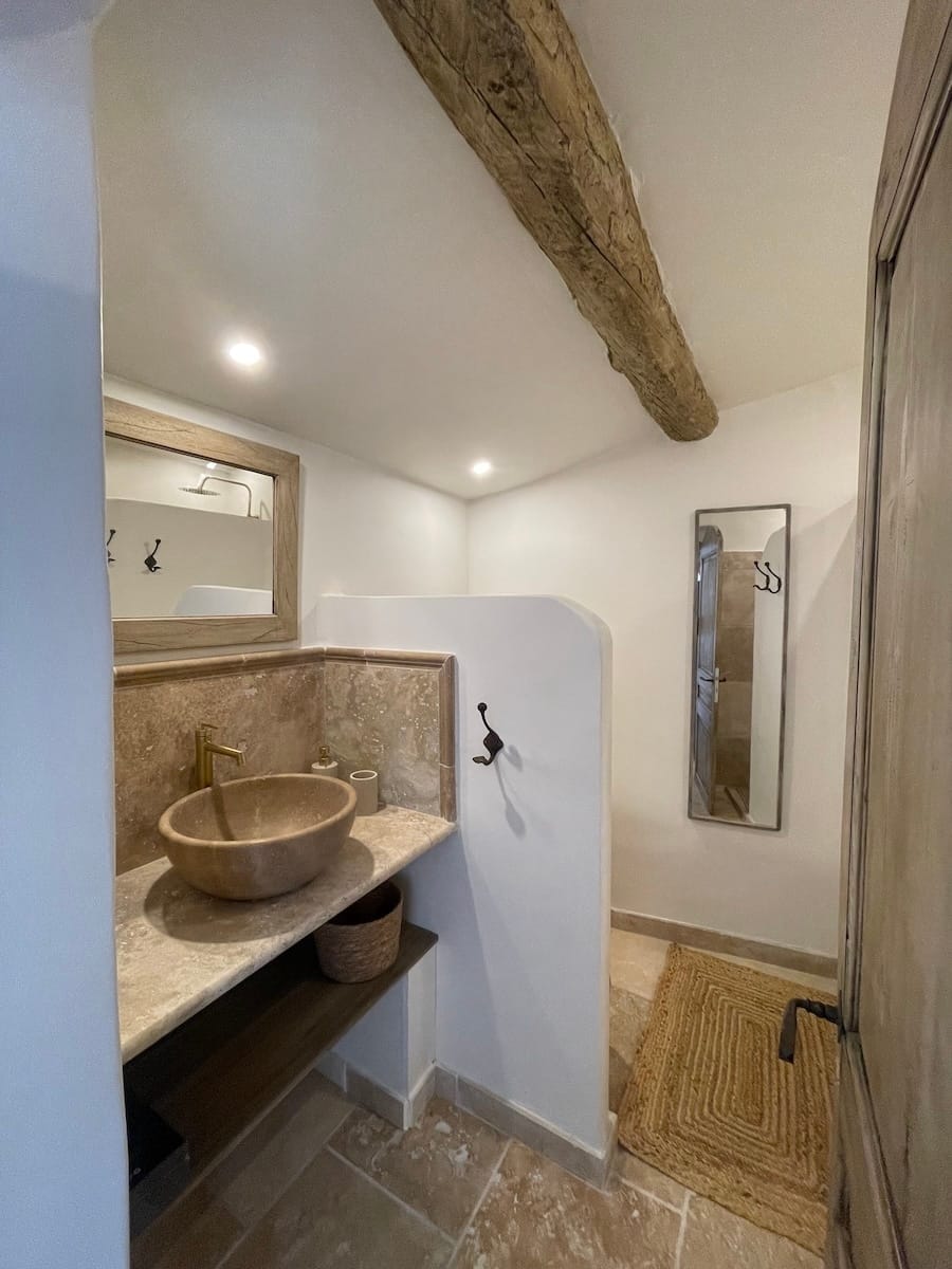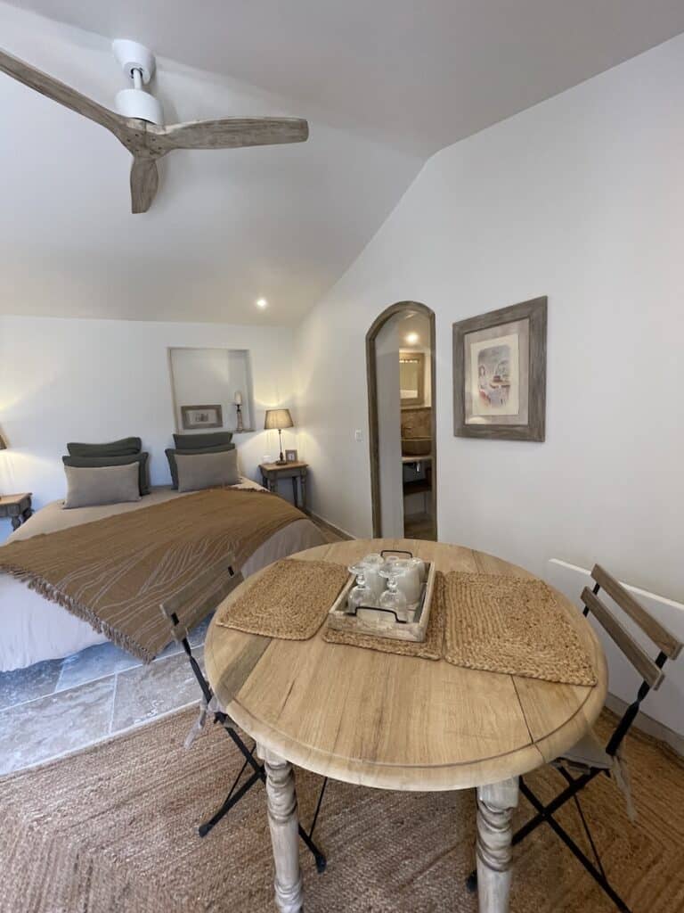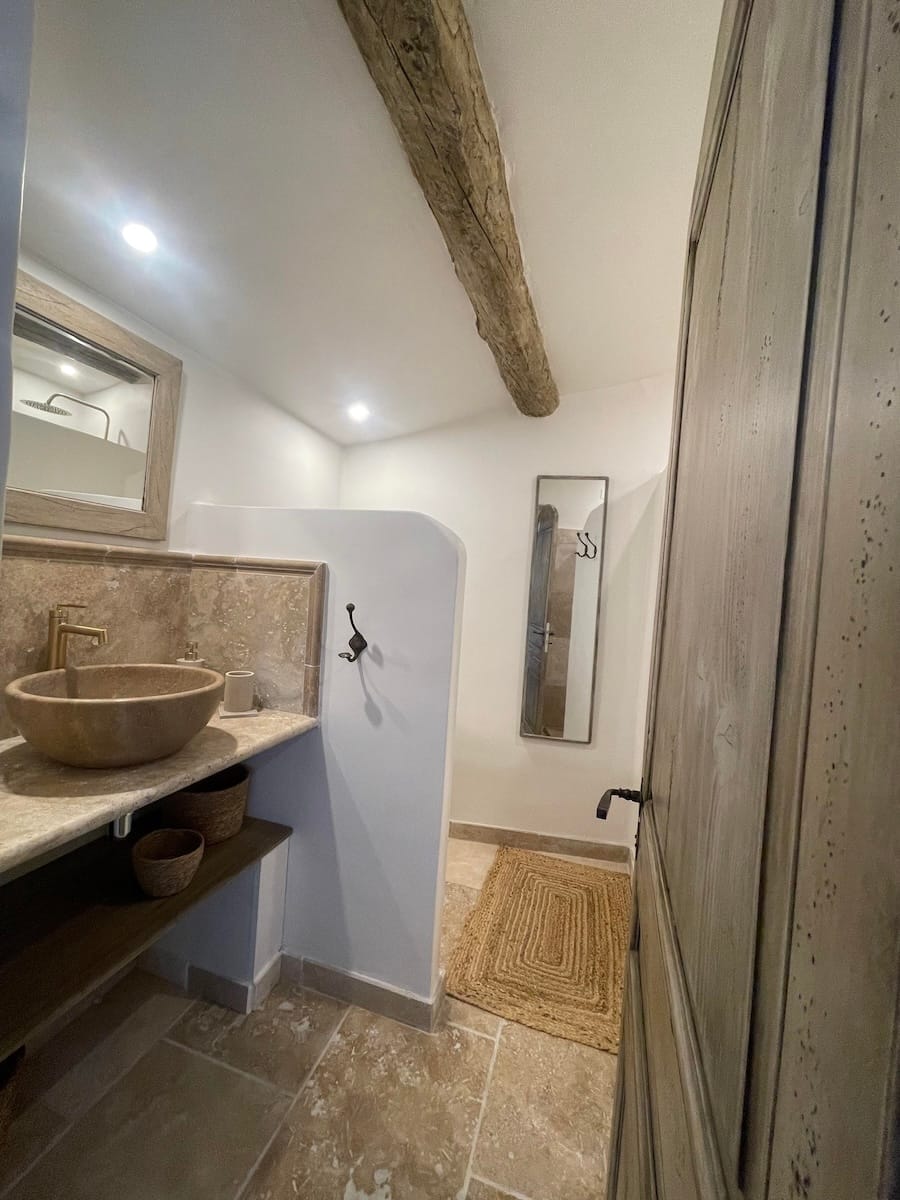 D’une superficie d’environ 25 m², elle vous offre le confort d’une chambre spacieuse et de sa salle de bains privative. Vous profiterez de votre propre entrée et d’une grande terrasse indépendante pour savourer le calme et la beauté du Luberon en toute intimité.