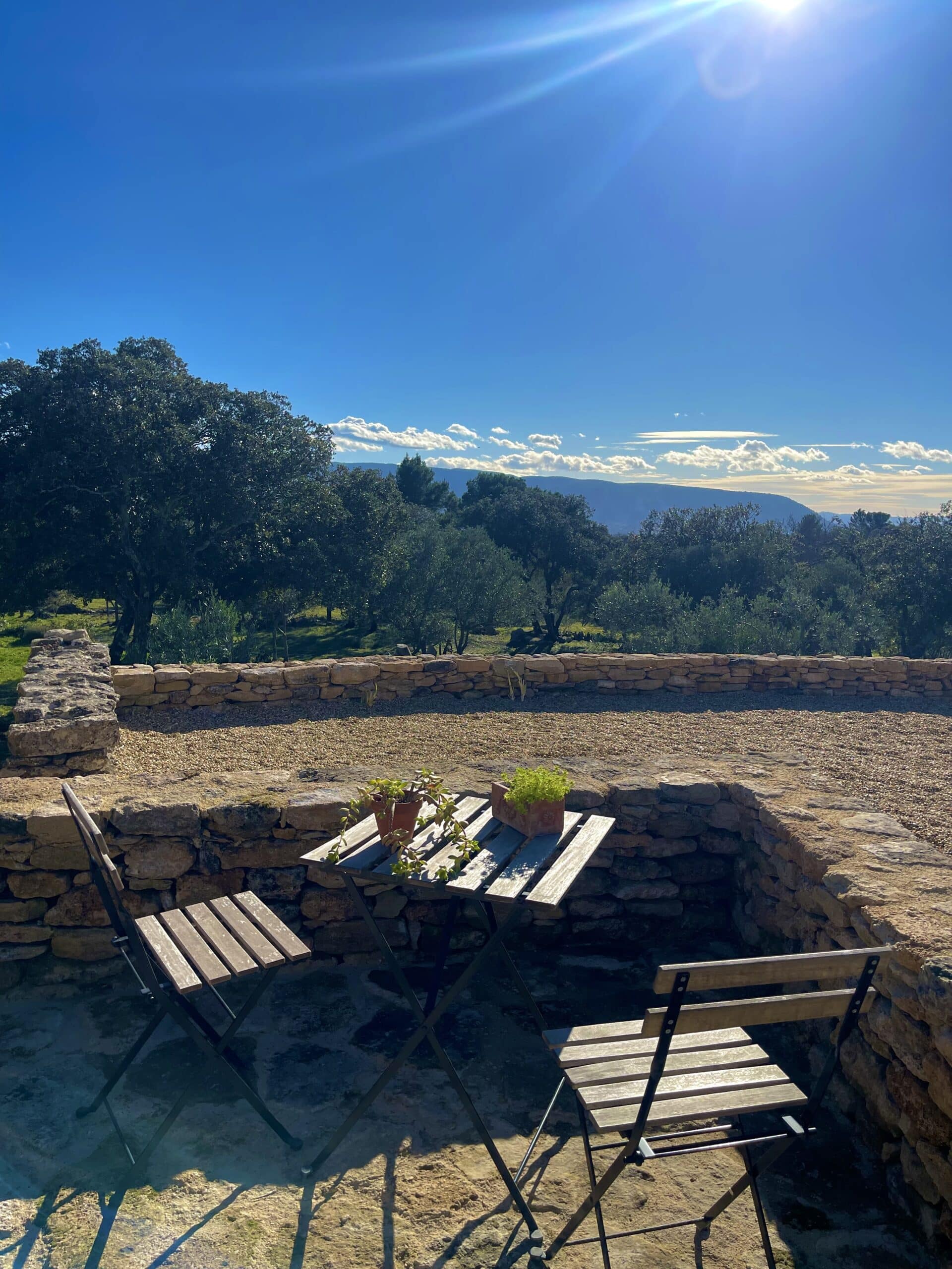 La vue dégagée sur le massif du Luberon, la pierre dorée, la lumière du sud et le parfum du lavandin composent un décor unique et un lieu intime, où chaque détail invite au repos et à la contemplation.